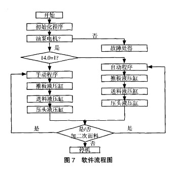 水泥制磚機控制系統軟件是根據對水泥磚機系統組成及控制原理分析,制磚機控制系統軟件由下面各程序模塊組成,其體如下,其流程如圖
