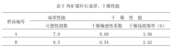 將A、B兩礦煤矸石進(jìn)行經(jīng)對輥破碎,全部經(jīng)過1mm篩,混合均勻后,原料加水?dāng)嚢?,陳?4h后進(jìn)行物理性能測試,其物理性能指標(biāo)見下表5 。