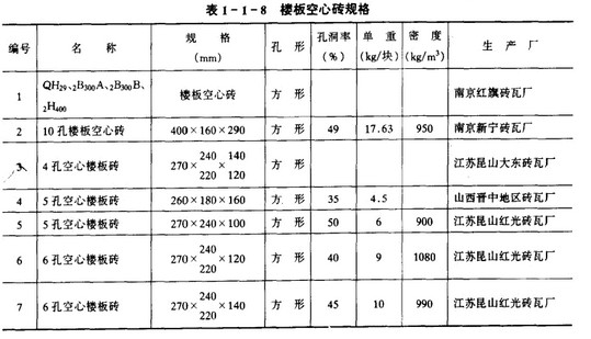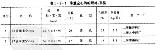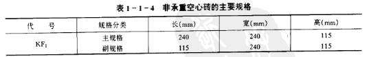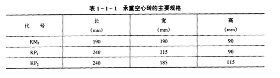 (1) 承重空心磚的主要規格有三種,見表1-1-1