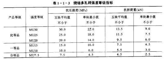 根據產品的強度等級、尺寸偏差、外觀質量及耐久性等又分為優等品(A)、一等品(B)和合格品(C)三個產品等級。各產品等級對應的強度等級及指標要求見表1一1一3所示。