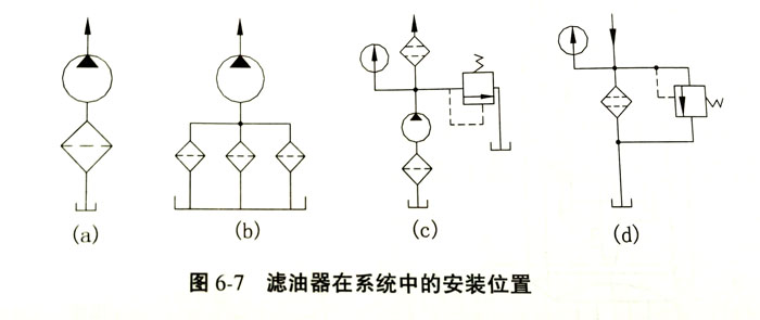 濾油器在液壓系統(tǒng)中的安裝位置有以下幾種情況: