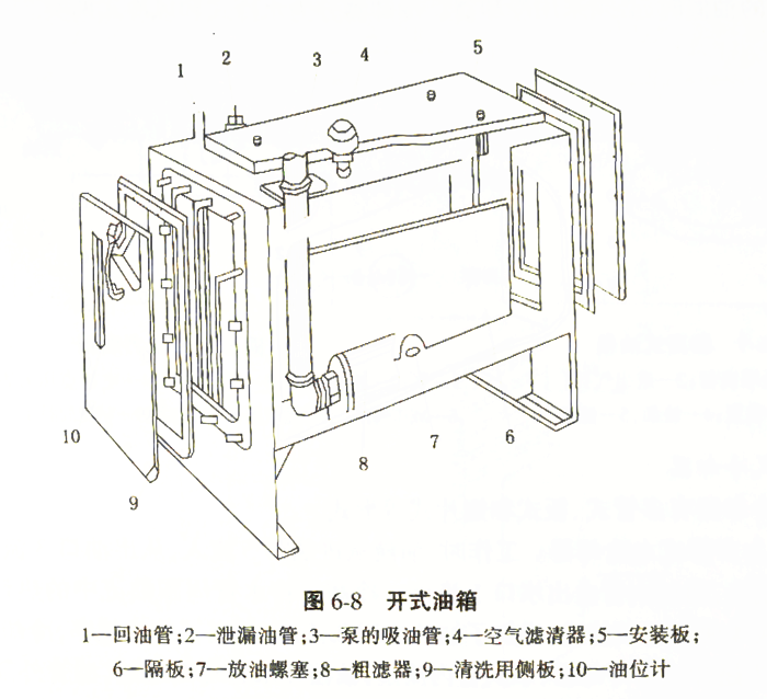 開式油箱如圖6-8所示。設計開式油箱時,應注意以下幾個問題:
